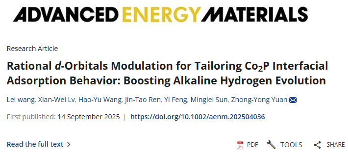 题目:Rational d-Orbitals Modulation for Tailoring Co2P Interfacial Adsorption Behavior: Boosting Alkaline Hydrogen Evolution