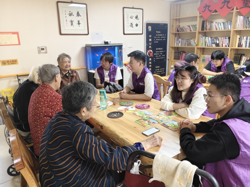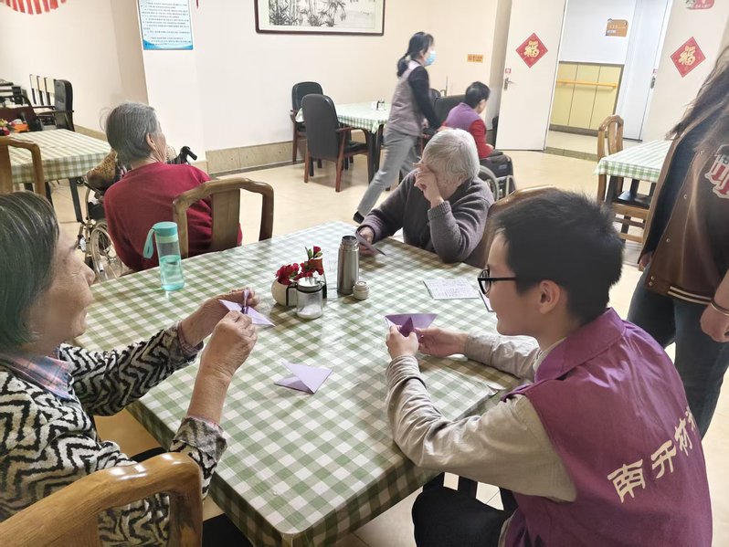 材料学院与福宁及吾颐养院具有良好的志愿服务合作基础。自2025年3月以来,材料学院志愿者多次赴福宁及吾颐养院开展志愿服务活动,精准对接老年群体实际需求。学生志愿者通过陪伴聊天、倾听老人讲述人生故事,帮助老年人缓解孤独感;组织手工制作、书法绘画等文娱活动,丰富老人的精神生活;策划主题联欢会,营造家庭般的温馨氛围;为行动不便老人读书读报,讲解手机使用技巧,协助使用智能设备与家人视频等,解决老人个性化需求。唱歌演出时的动人合唱、折纸环节的创意频出、棋牌对弈间的欢声笑语,让老年群体的精神生活愈发充实。志愿者们用真诚陪伴与细致关怀拉近了与老人的距离,获得颐养院相关负责人的高度肯定。