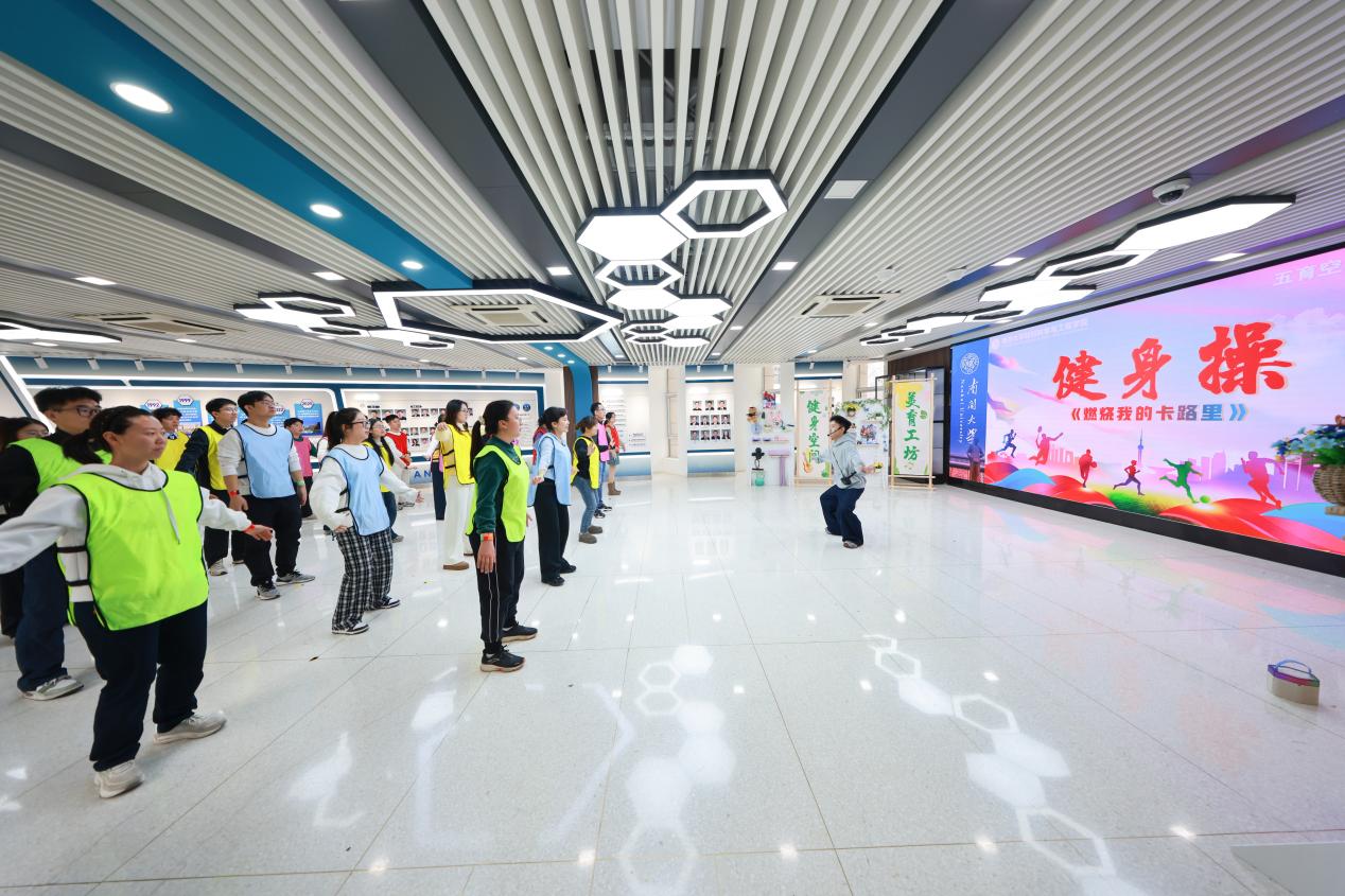 接下来,在场师生以一场欢快的健身操《燃烧我的卡路里》点燃运动热情,激发健身动力。