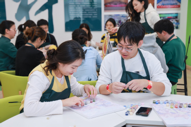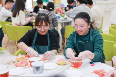 最后,师生们一起走进“育材工作室”,沉浸式体验了健身器械大比拼、疯狂动物城数字画、固体杨枝甘露 DIY、治愈系盆栽种植等主题活动,生动展示了五育融合育人的的实践成果。