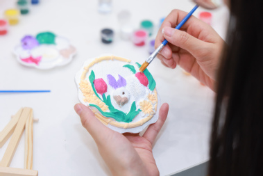 美育工坊中,石膏画、数字油画、扎染等艺术材料琳琅满目,响应美育浸润行动,为师生提供陶冶情操的平台。