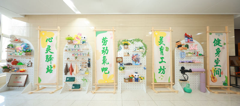 心灵驿站内,解压玩具与舒适陈设温馨雅致,落实心理健康管理要求,成为师生情绪疏导的静谧港湾。四大功能区相辅相成,让五育融合理念落地生根。