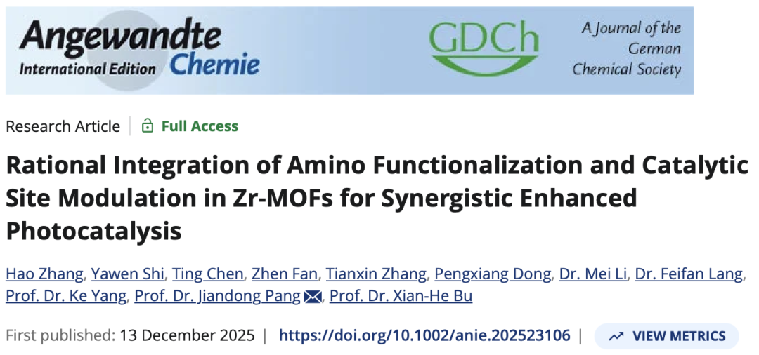 题目:Rational Integration of Amino Functionalization and Catalytic Site Modulation in Zr-MOFs for Synergistic Enhanced Photocatalysis