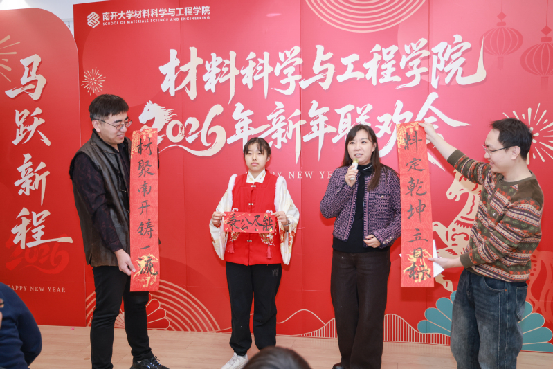 作为南开大学“对标争先”党建标杆院系,材料学院将以此次联欢会为契机,持续发扬爱国奋斗、公能日新的育人传统,牢牢把握立德树人根本任务,在“十五五”规划的新征程上,凝心聚材、勇毅前行,在教育强国、科技强国、人才强国建设中展现南开材料的作为与担当,书写更加辉煌的新篇章!