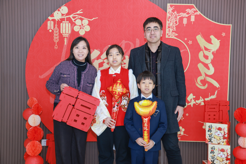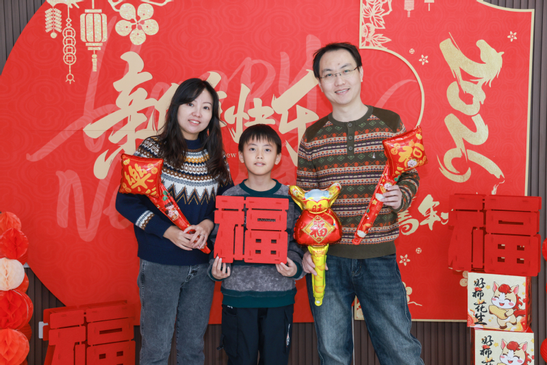 暖意融融、欢声盈耳。大厅的新年主题摄影角“幸福时光里”早已布置妥当,不少陆续到场的老师与家属在此拍摄全家福,留念温馨瞬间。在学工团队热情洋溢、催人奋进的开场曲目《相亲相爱》旋律中,本次联欢会正式拉开序幕。