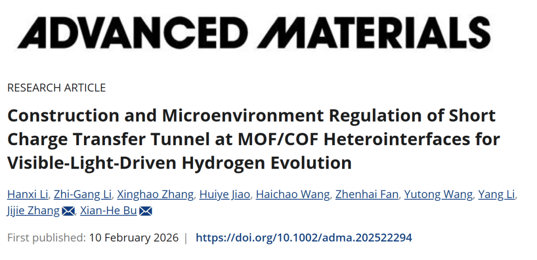 题目:Construction and Microenvironment Regulation of Short Charge Transfer Tunnel at MOF/COF Heterointerfaces for Visible-Light-Driven Hydrogen Evolution