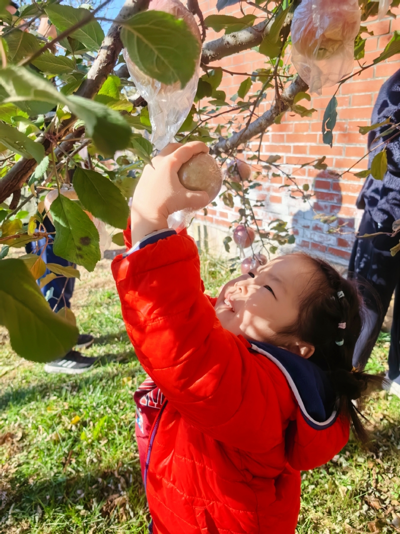 午后行程以苹果采摘拉开序幕。在村民的指引下,大家走进硕果累累的苹果园,亲手采摘当季鲜果。教职工与孩子们穿梭林间,体验劳作乐趣,感受“一分耕耘一分收获”的农耕智慧。“第一次带孩子体验采摘,他不仅认识了果树生长过程,还懂得了珍惜粮食的道理。”一位家长如是说道。