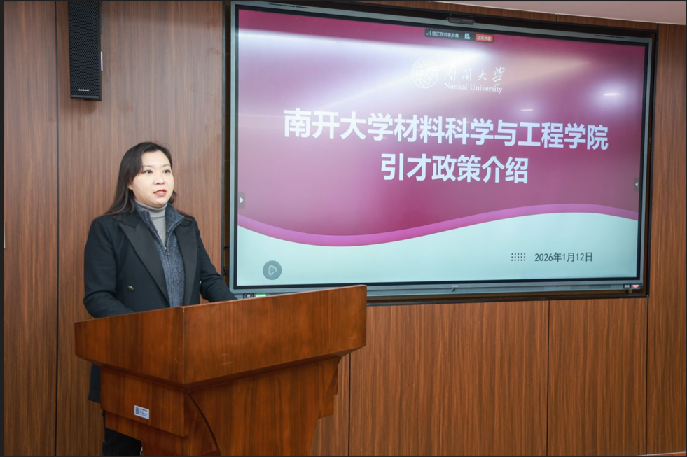 副院长王珊珊结合学院人才引进政策与参会人员多元化背景,重点介绍了学院人才体系及博士后招收政策,并向与会青年学者发出诚挚邀请,期待大家加盟南开材料,共同助力材料学科“双一流”建设。
