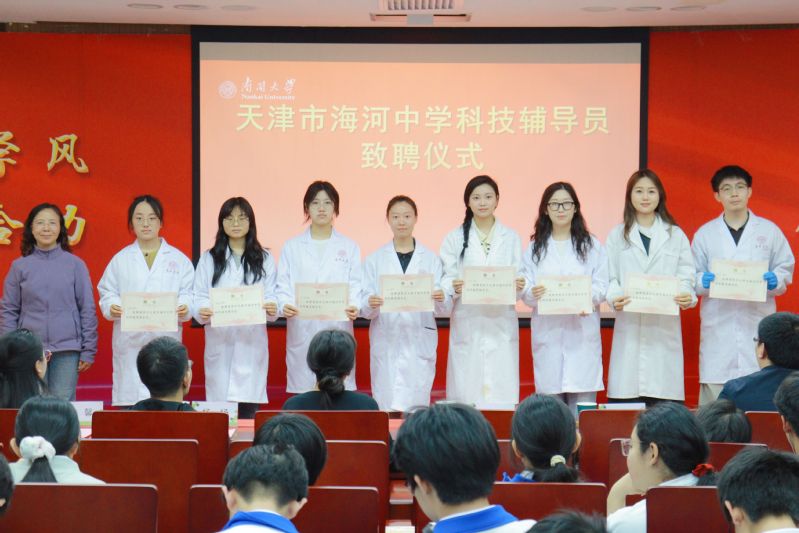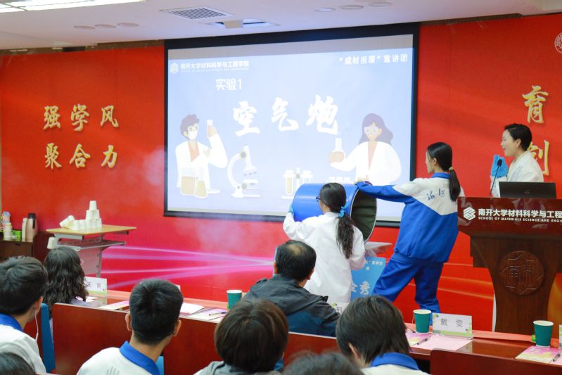 出席活动的有海河中学德育副校长张朝燕、校办主任兼团委书记段帅帅;南开大学材料科学与工程学院党委副书记兼副院长王寅、团委书记杨晓颖、团委副书记杨扬、辅导员张馨、成材报国科普团成员,以及360余名海河中学师生代表。