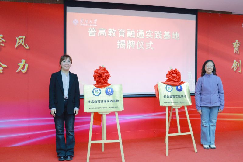 在热烈的掌声中,张朝燕与王寅共同为科普教育实践基地、普高教育融通实践基地揭牌。