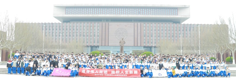 在总理像前,全体师生整齐列队、合影留念,深刻感悟“为中华之崛起而读书”的初心使命。