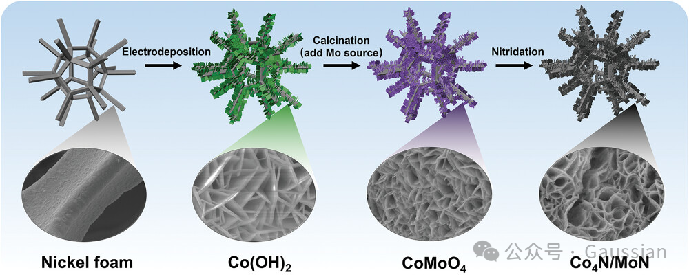 图1.Co4N/MoN复合材料的制备过程示意图。