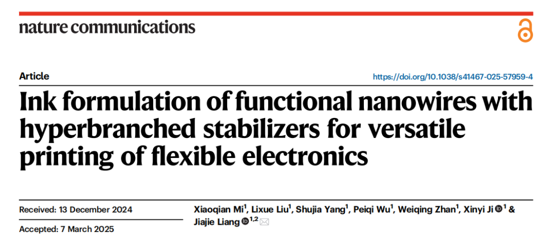 题目:Ink formulation of functional nanowires with hyperbranched stabilizers for versatile printing of flexible electronics