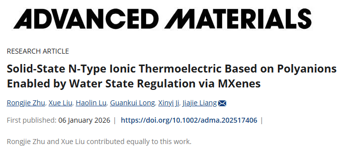 题目:Solid-State N-Type Ionic Thermoelectric Based on Polyanions Enabled by Water State Regulation via MXenes
