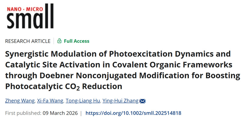 题目:Synergistic Modulation of Photoexcitation Dynamics and Catalytic Site Activation in Covalent Organic Frameworks through Doebner Nonconjugated Modification for Boosting Photocatalytic CO2 Reduction