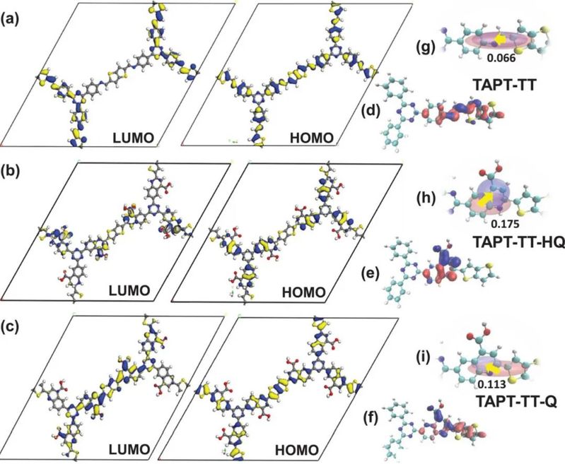 6. 四极矩分析:TAPT-TT-HQ和TAPT-TT-Q的四极矩指数增强,有利于载流子分离和CO2吸附