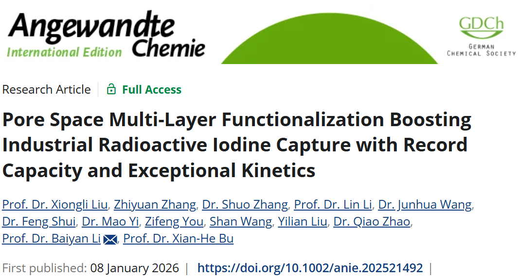 题目:Pore Space Multi-Layer Functionalization Boosting Industrial Radioactive Iodine Capture with Record Capacity and Exceptional Kinetics