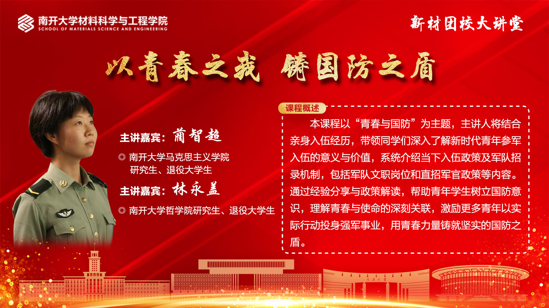 新材团校 | 退役大学生为材料学院新材团校主讲“以青春之我,铸国防之盾”主题团课