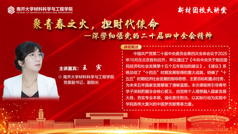 新材团校 | 王寅副书记为材料学院新材团校开班并主讲党的二十届四中全会精神