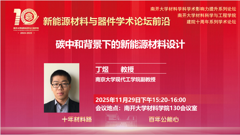 南开大学材料科学与工程学院成立十周年系列学术论坛——碳中和背景下的新能源材料设计